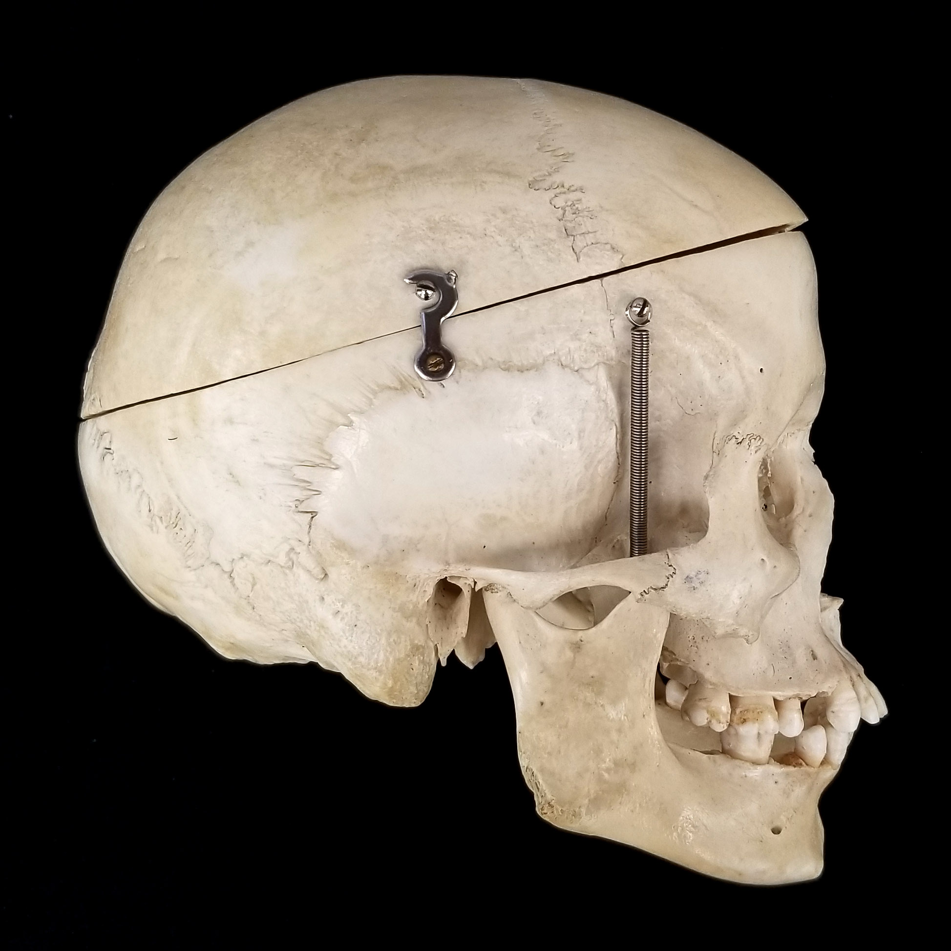 Adult human skull with parietal notch bone. Right lateral view. |