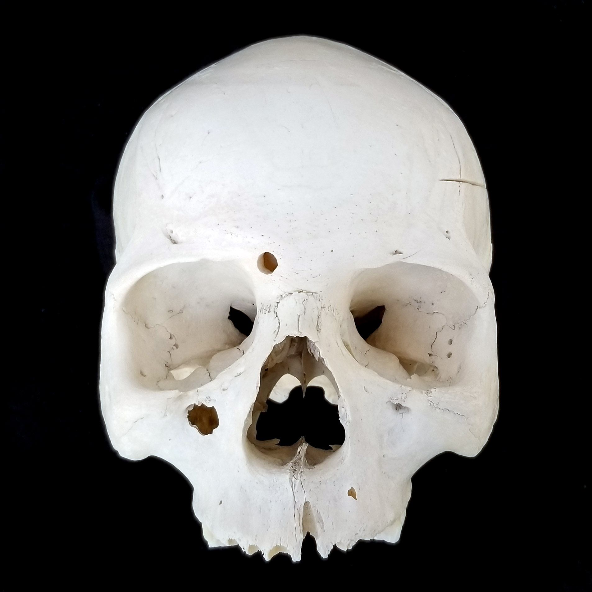 Adult human skull with infraorbital sutures. Anterior view. |