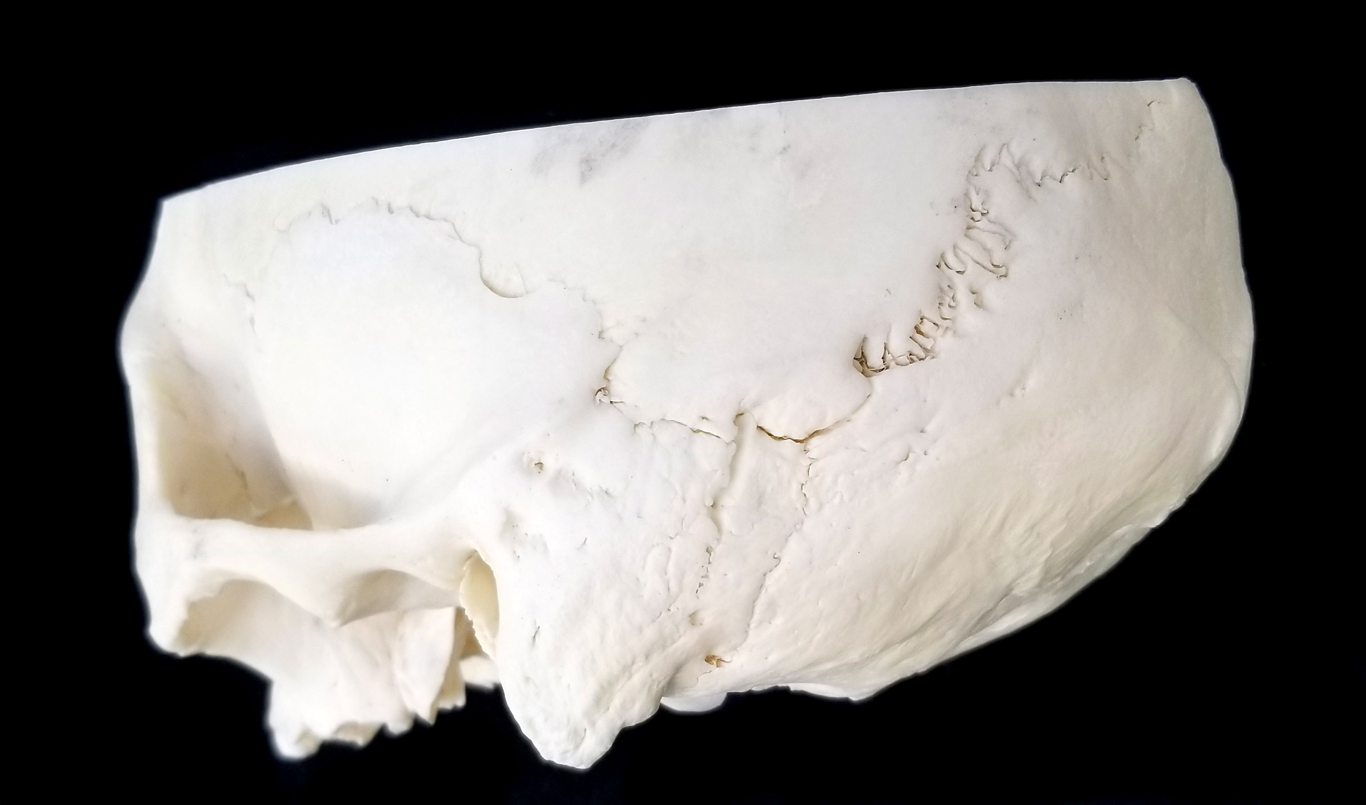 Adult human skull with trace of squamomastoid suture. Left posterolateral view. |