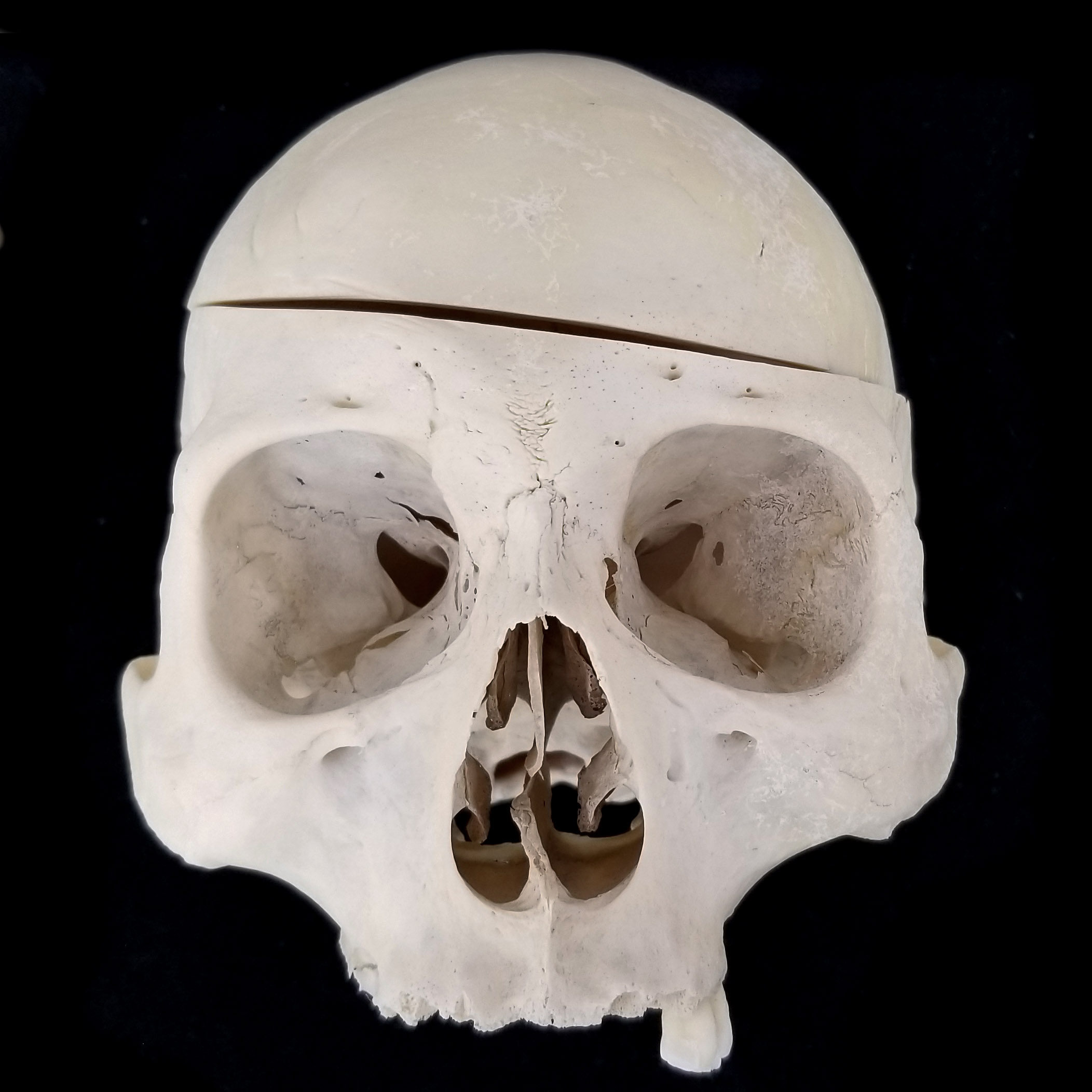 Adult human skull with supranasal suture. Anterior view. |