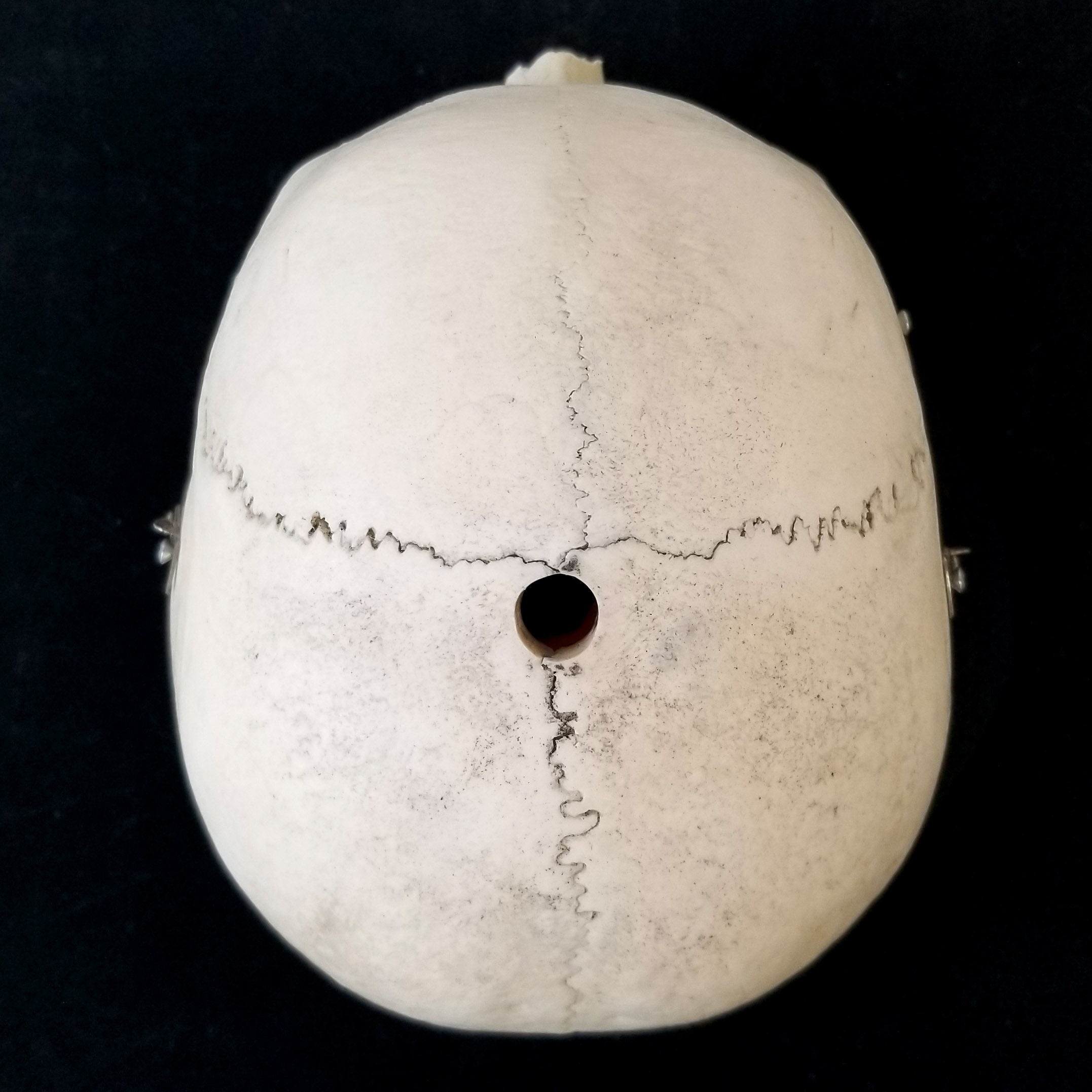 Adult human skull. (Hole from mounting.) Superior view. |