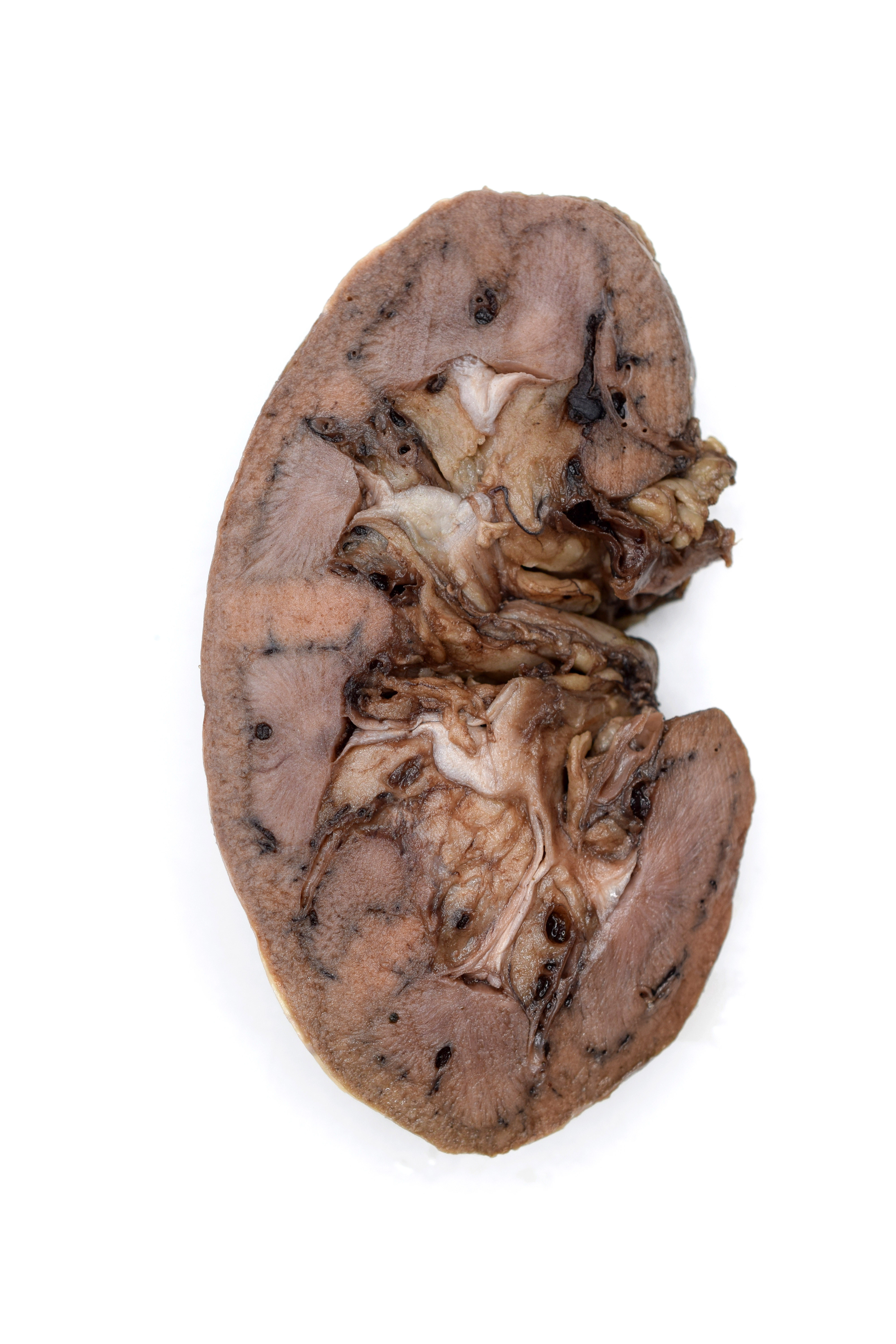Right kidney from a formalin-embalmed adult human cadaver. Frontal section, posterior portion. |