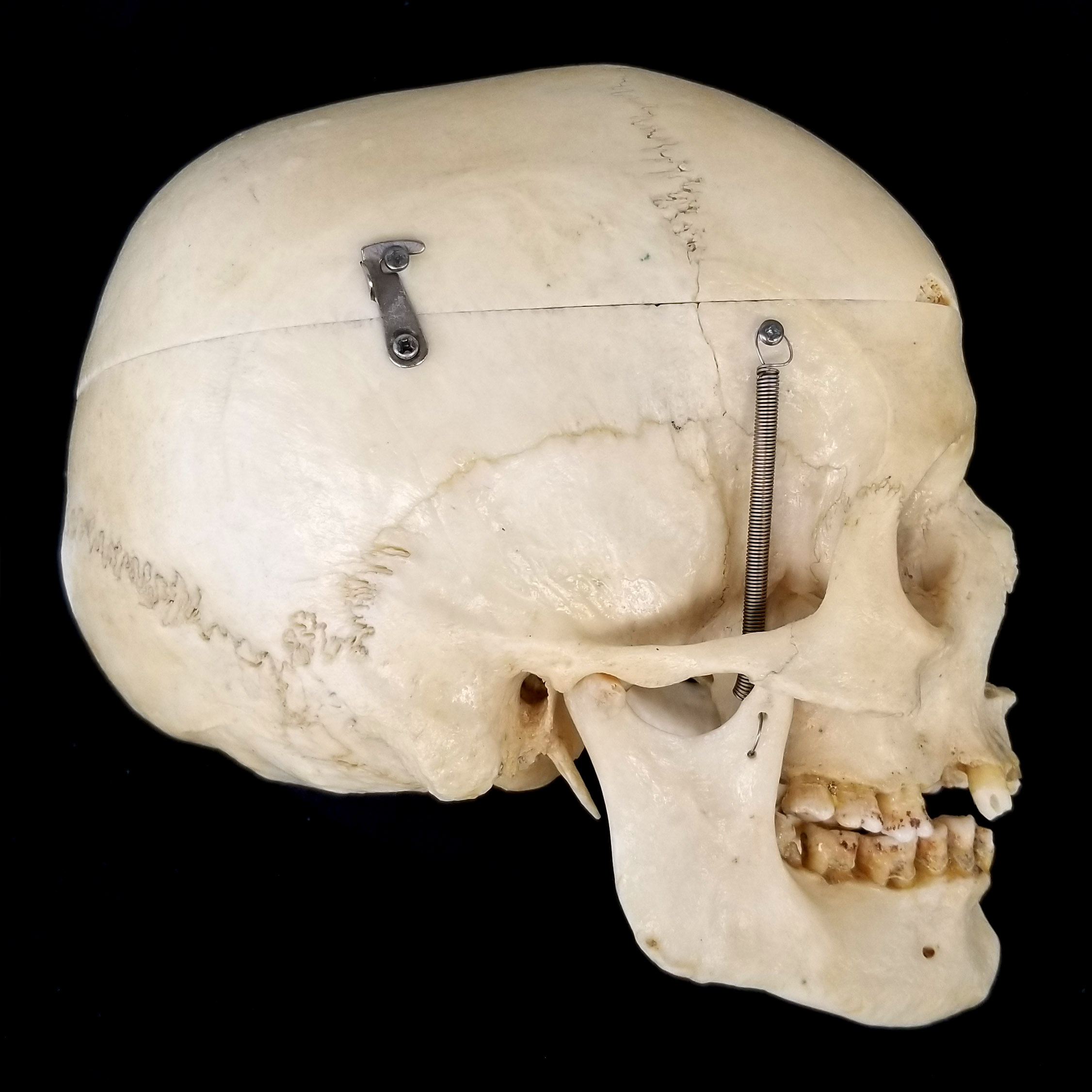 Adult human skull with ossicles in occipitomastoid suture and bordering pterion. Right lateral view. |
