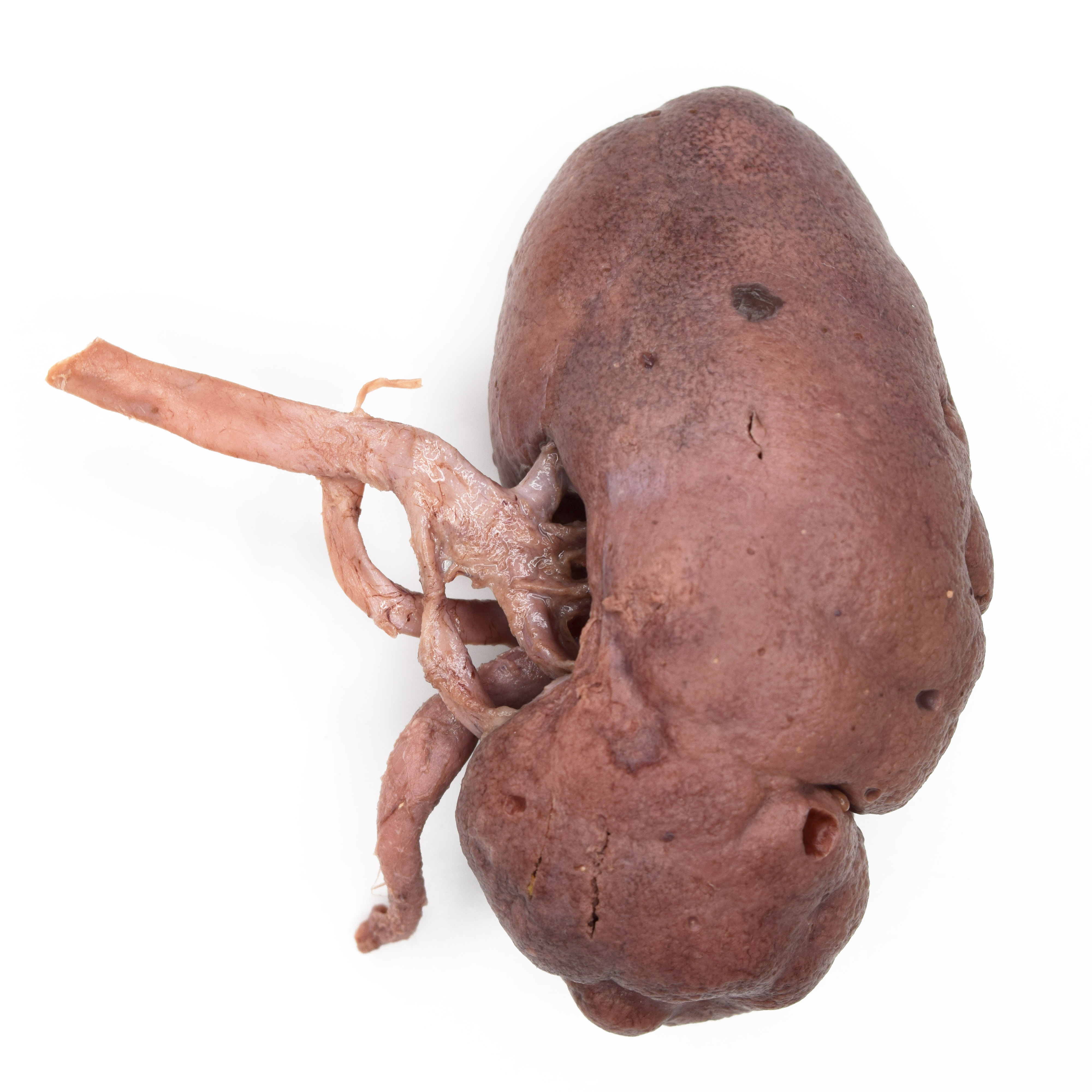 Left kidney from a formalin-embalmed adult human cadaver. Anterior view. Renal vein and adipose removed. |