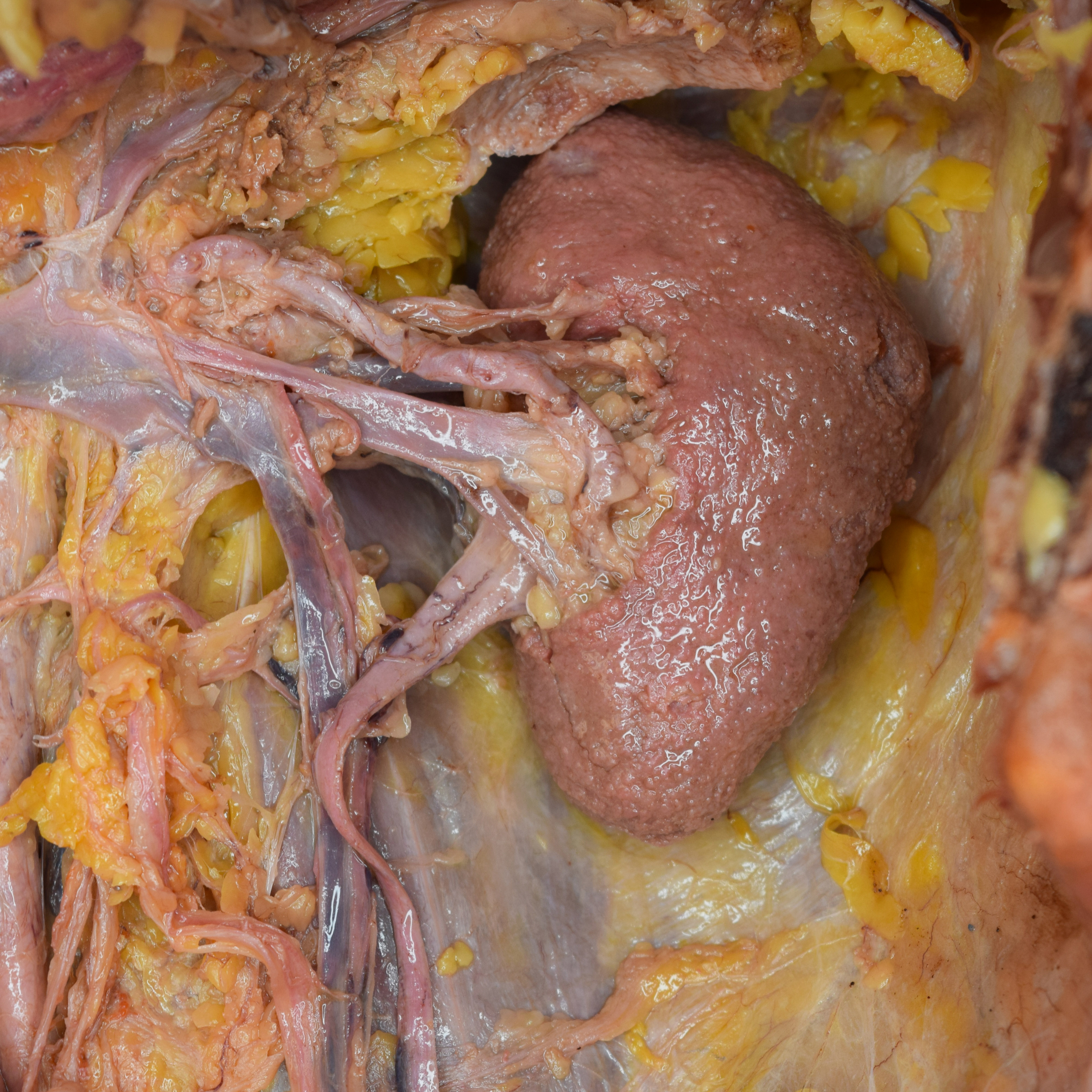 Left kidney of a formalin-embalmed adult human cadaver. Anterior view. |