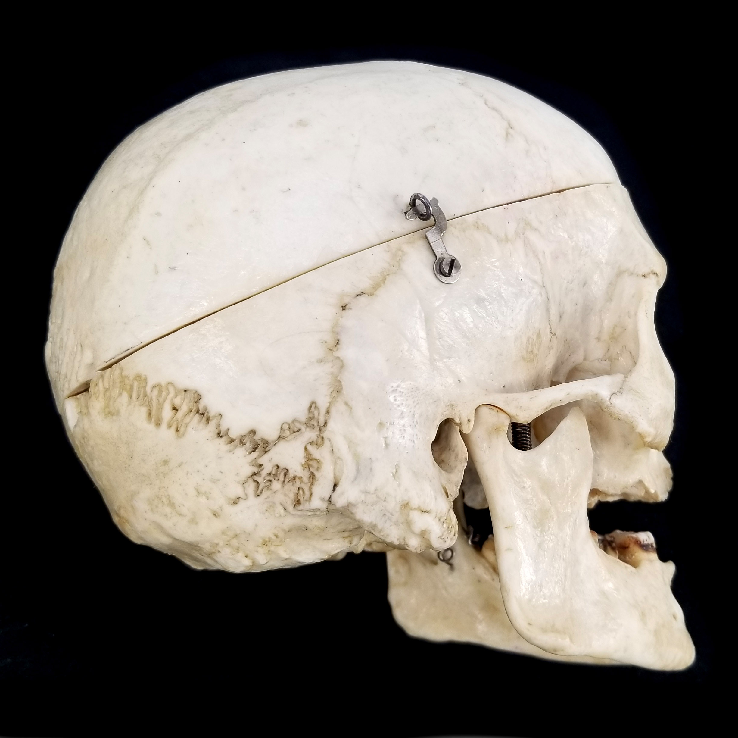 Adult human skull with ossicle at asterion. Right posterolateral view. |