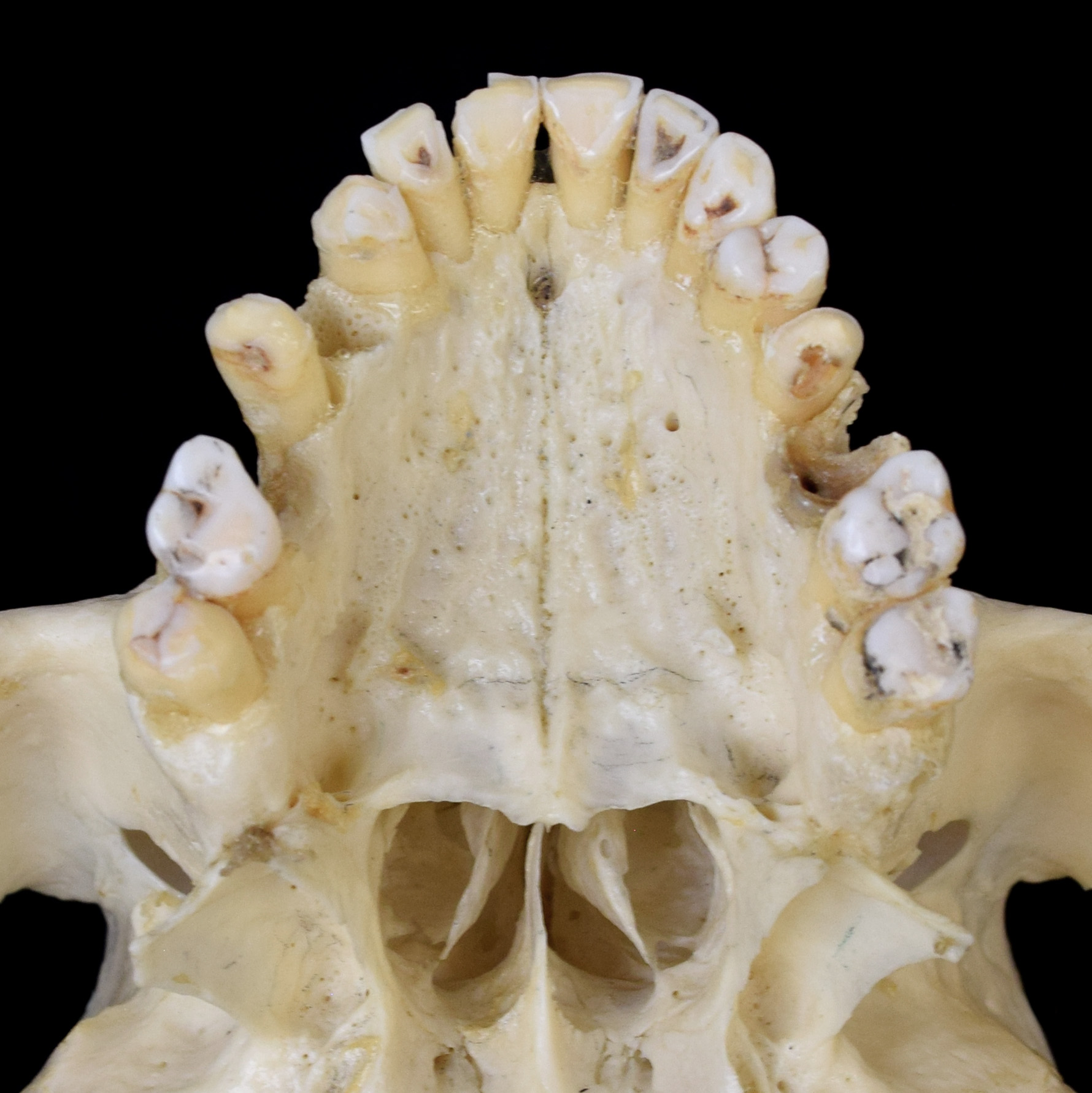 Adult human skull, focus on palatine bone. Basal view. |