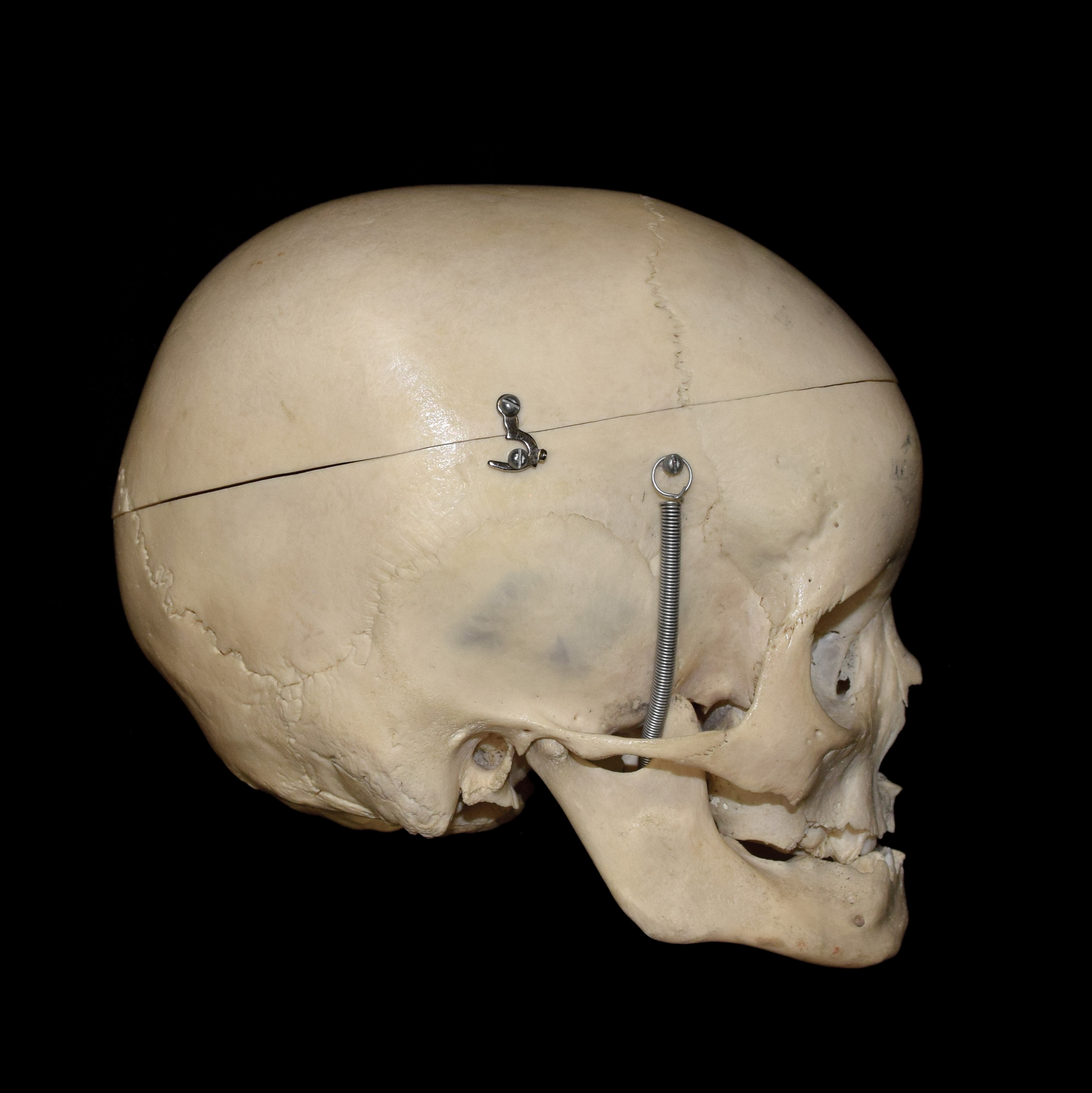 Juvenile human skull. Cranium width 14.5 cm. Right lateral view. |