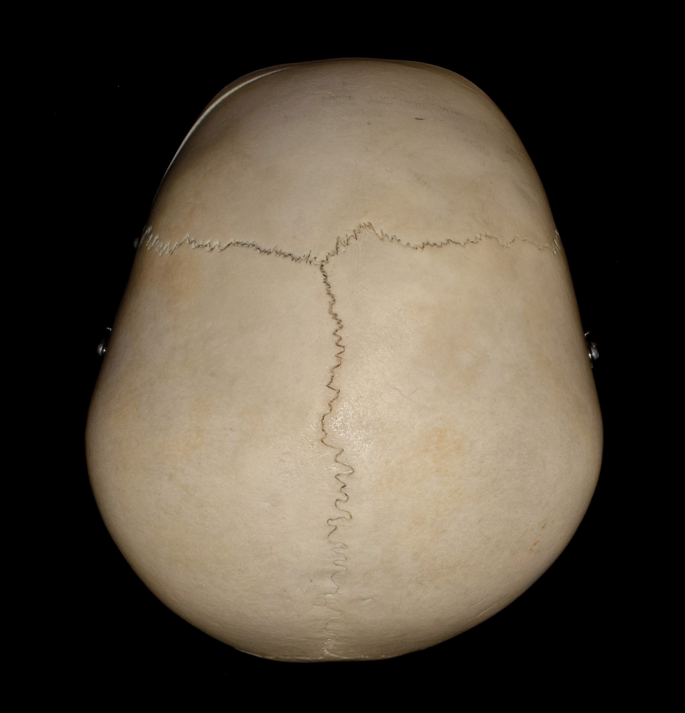 Juvenile human skull. Cranium width 14.5 cm. Superior view. |