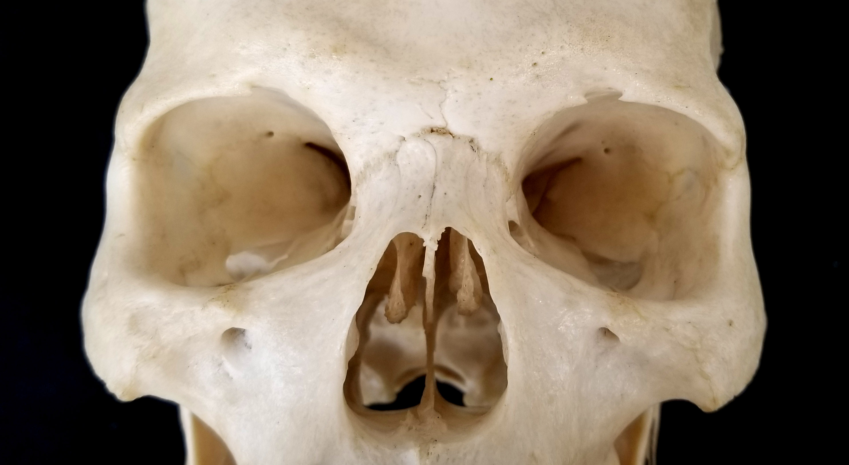 Adult human skull with supranasal suture. Anterior view of orbital region. |