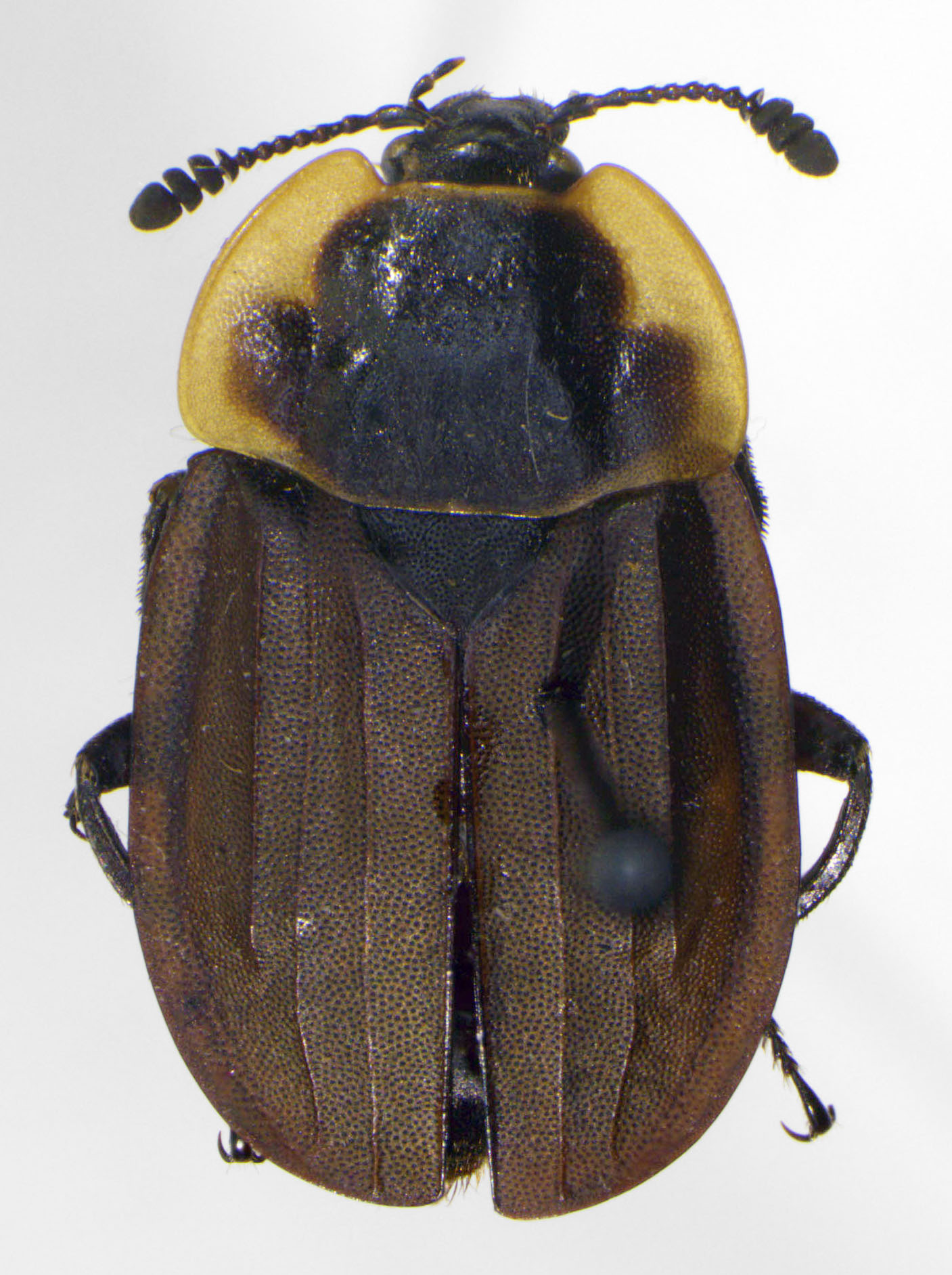 Adult male O. noveboracense. Dorsal view. Specimen dimensions: width of elytra = 7 mm; width of pronotum = 6 mm. |