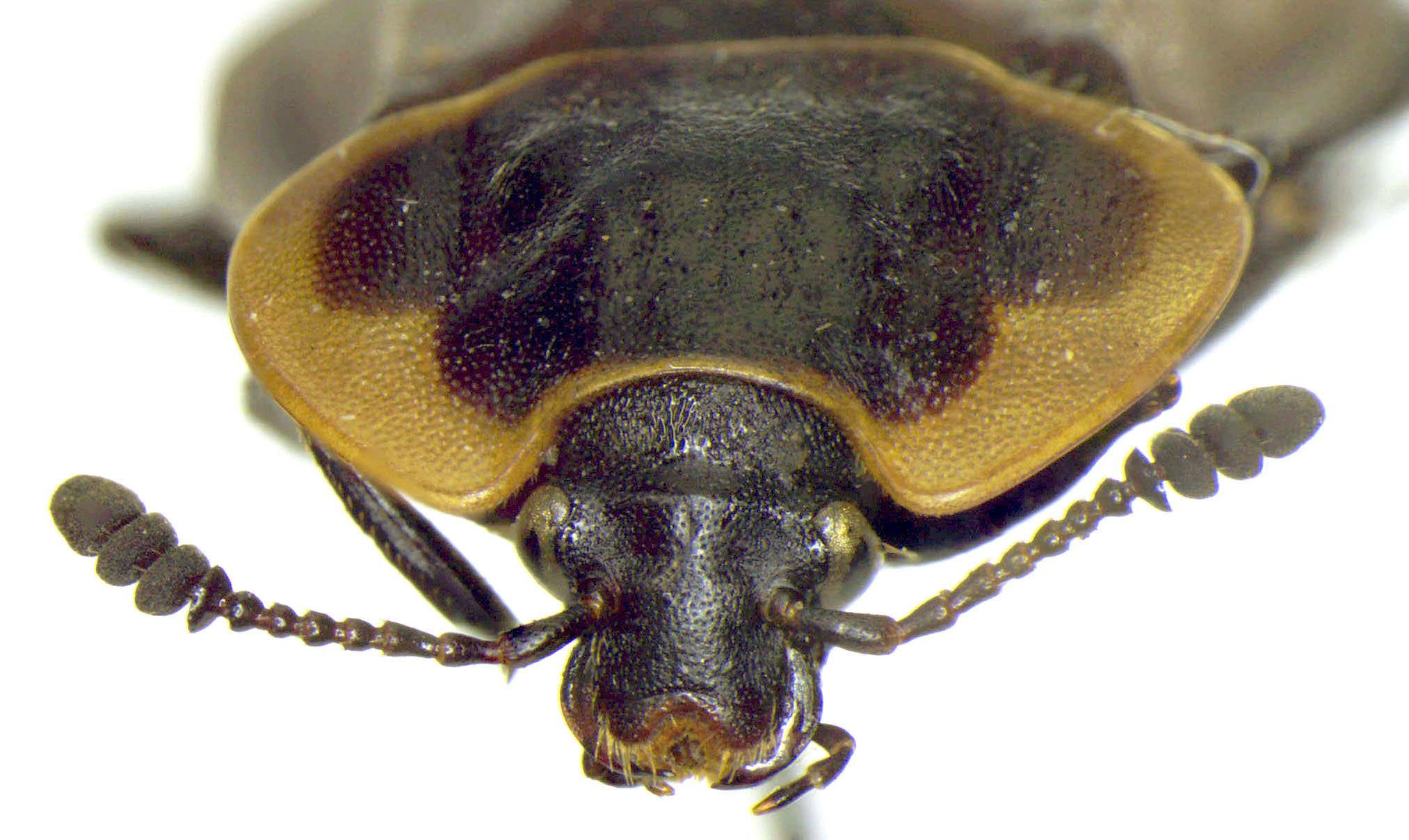 Adult male O. noveboracense. Dorsoanterior view of head. Specimen dimensions: width of elytra = 7 mm; width of pronotum = 6 mm. |